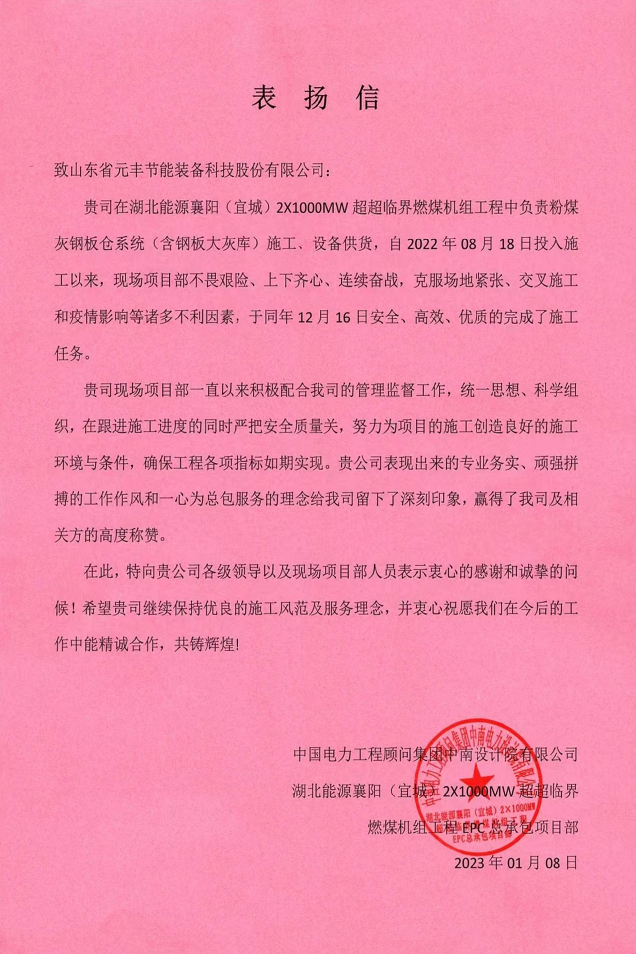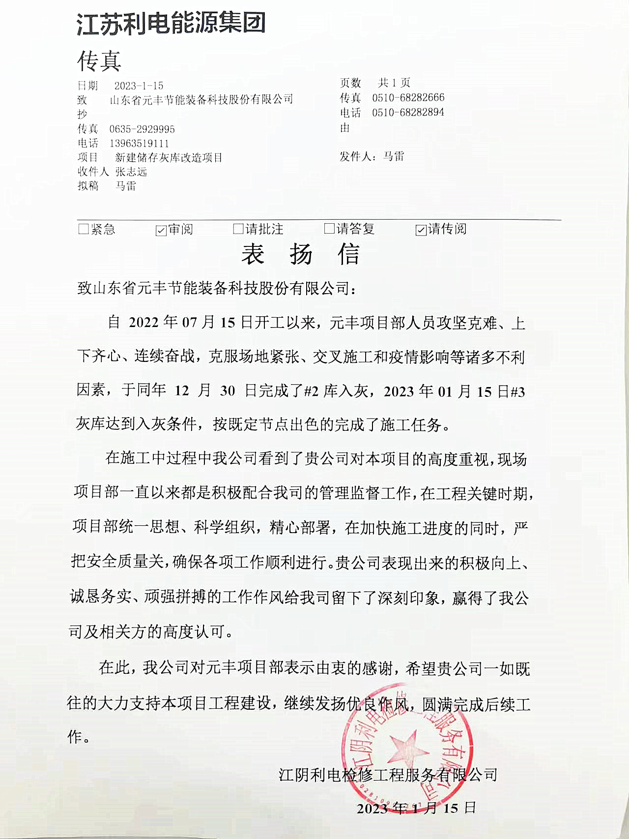 信中指出,自2022年07月15日开工以来,金年会.vip项目部人员攻坚克难、上下齐心、连续奋战,克服场地紧张、交叉施工和疫情影响等诸多不利因素,于同年12月30日完成了#2库入灰,2023年01月15日#3灰库达到入灰条件,按既定节点出色的完成了施工任务。